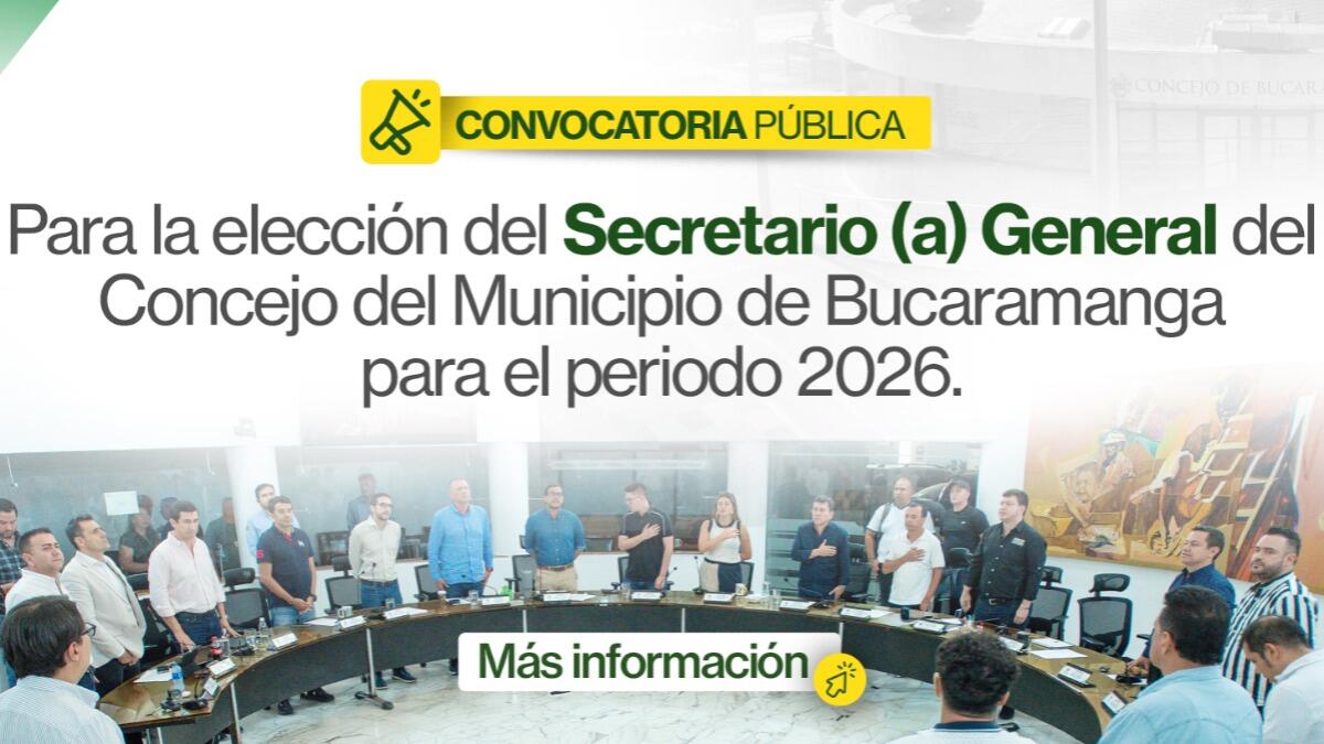 AVISO DE CONVOCATORIA “POR MEDIO DE LA CUAL SE DA APERTURA A LA CONVOCATORIA PÚBLICA PARA LA ELECCIÓN DELSECRETARIO (A) GENERAL DEL CONCEJO DEL MUNICIPIO DE BUCARAMANGA PARA EL PERIODO 2026”